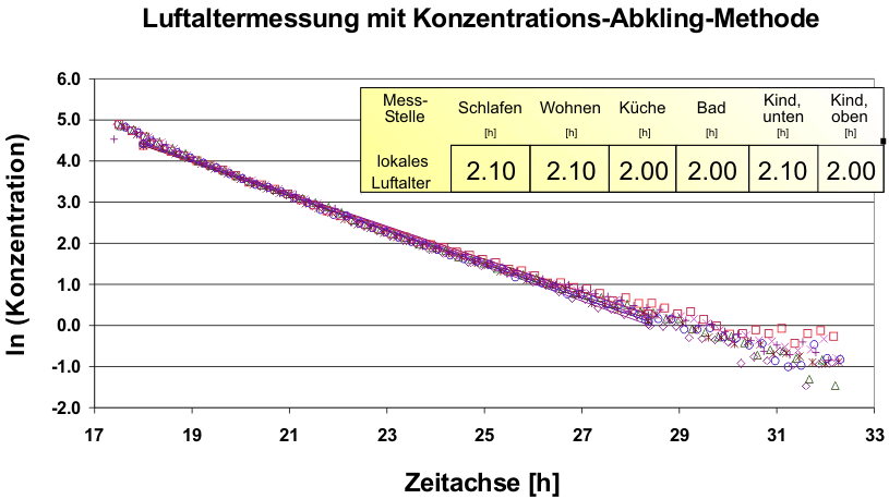 Eine übliche Kenngröße für den Luftaustausch ist die Luftwechselrate - das Verhältnis von Außenvolumenstrom zu Raumluftvolumen. Neben der Luftwechselrate sind das Luftalter und daraus abgeleitet die Lüftungswirksamkeit weitere Kriterien für die Luftqualität. Mit diesen Größen kann die Luftführung im Raum beurteilt werden. Das Luftalter sagt aus, wie lange sich die Luft bereits im Raum befindet. Der Luftaustauschwirkungsgrad kennzeichnet die Wirksamkeit des Lüftungssystems.