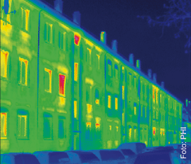 Die Infrarot-Thermografie ist ein bildgebendes Verfahren, das die Wärmestrahlung (Infrarotlicht) eines Objektes sichtbar macht. Mit Hilfe der Infrarot-Thermografie kann die Oberflächentemperatur z.B. eines Bauteils ermittelt und dargestellt werden – es können Informationen über Wärmeverluste gewonnen werden. Die Ausführung von Wärmedämm-Maßnahmen, Wärmebrücken, Warmluftströme, etc. kann mit diesem Verfahren qualitativ untersucht werden. Quantitative Aussagen wie z.B. der exakte Wärmedämmstandard eines Bauteils sind dagegen anhand der Thermographie nur schwierig zu beurteilen. Die richtige Erstellung und Auswertung von Infrarot-Aufnahmen erfordert Sachverstand und Fachwissen. Bei sorgfältiger Auswertung stellt die Thermographie eine wertvolle Hilfe zur Beurteilung der thermischen Gebäudehülle dar.