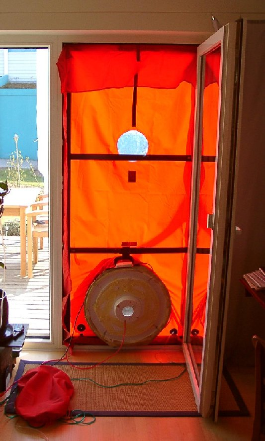 | Leckage-Suche | Eingebaute BlowerDoor in einer Terrassentür |
